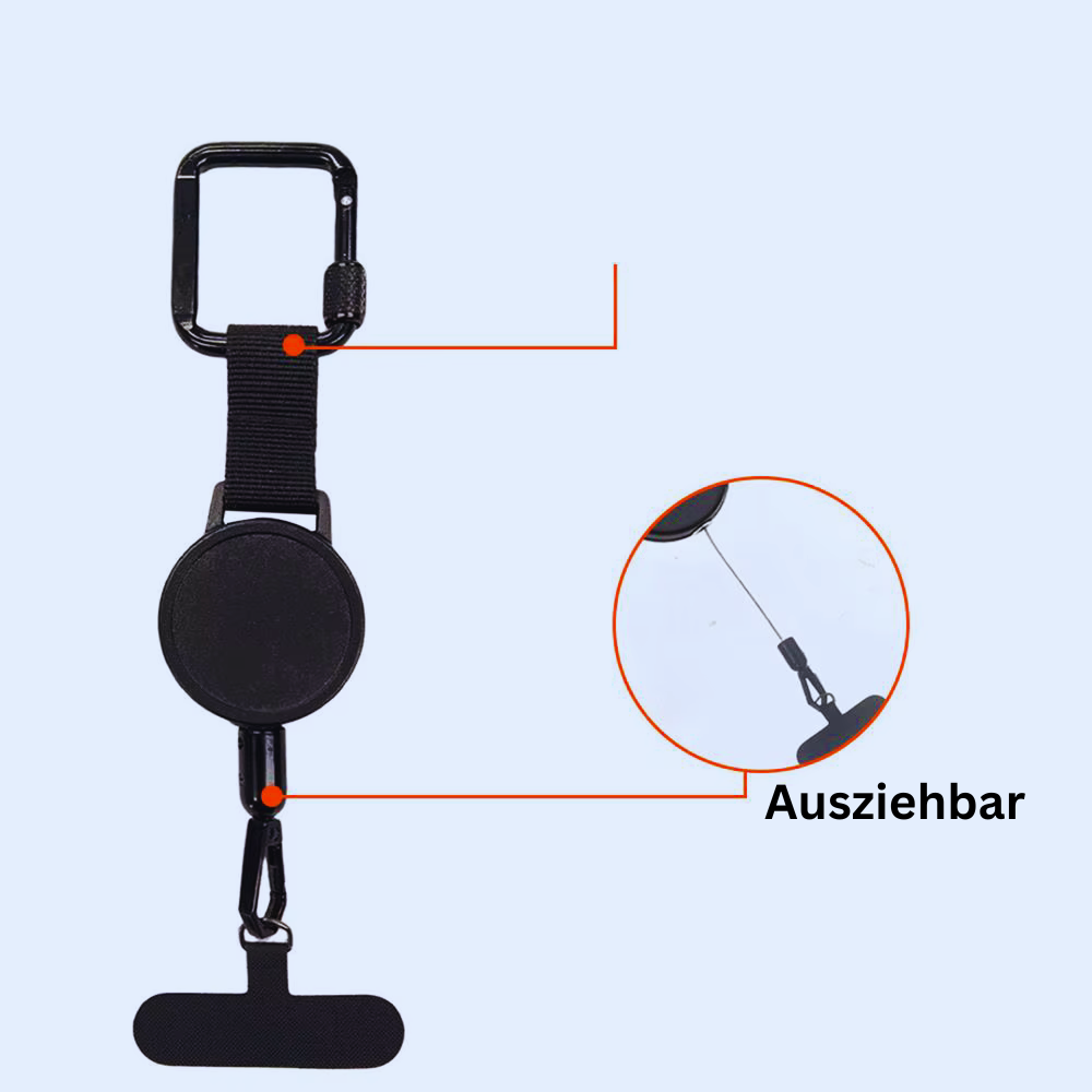 Mit der ausziehbaren Handysicherung bleibt Ihr Smartphone sicher an Ihrer Seite – sei es beim Reisen, Wandern oder im Alltag. Schützen Sie, was Ihnen wichtig ist, und behalten Sie Ihr Handy stets griffbereit.